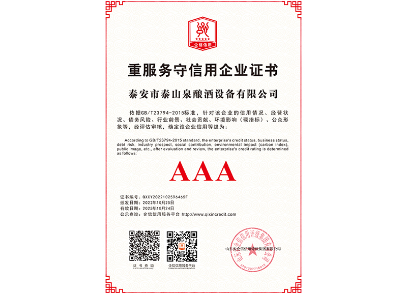 泰安市泰山泉釀酒設備有限公司,是一家專業從事釀酒設備機械化研發并集技術咨詢,工程設計,制造安裝,人員培訓及售后服務為一體的綜合性企業,本公司主要產品為:大曲清香、小曲清香、大曲醬香、大曲濃香等香型白酒機械化設備。 本公司與中國科學院自動化研究所簽訂技術服務合同,引進先進技術,研究生產全自動化機械釀酒設備,由中國科學自動化研究所的技術支持,打造最先進的生產釀酒設備,公司有信心打造全國最先進白酒...